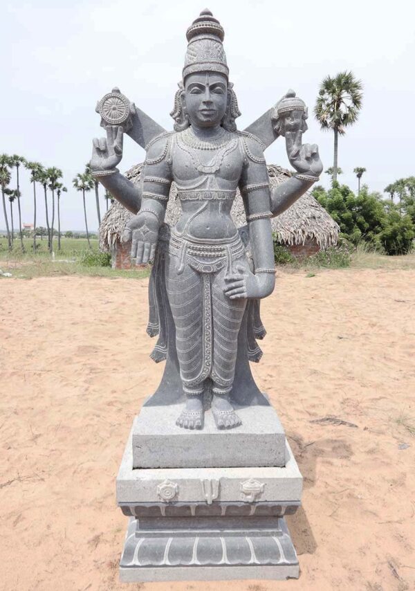 Lord Vishnu is part of the Trimurti (trinity of Gods), Lord Vishnu is the maintainer or preserver. The Rigveda says: Vishnu can travel in three strides. The first stride is the Earth. The second stride is the visible sky.The third stride cannot be seen by men and is the heaven where the gods and the righteous dead live.In this idol Lord Vishnu is depicted in standing mode holding mace in His hand.
